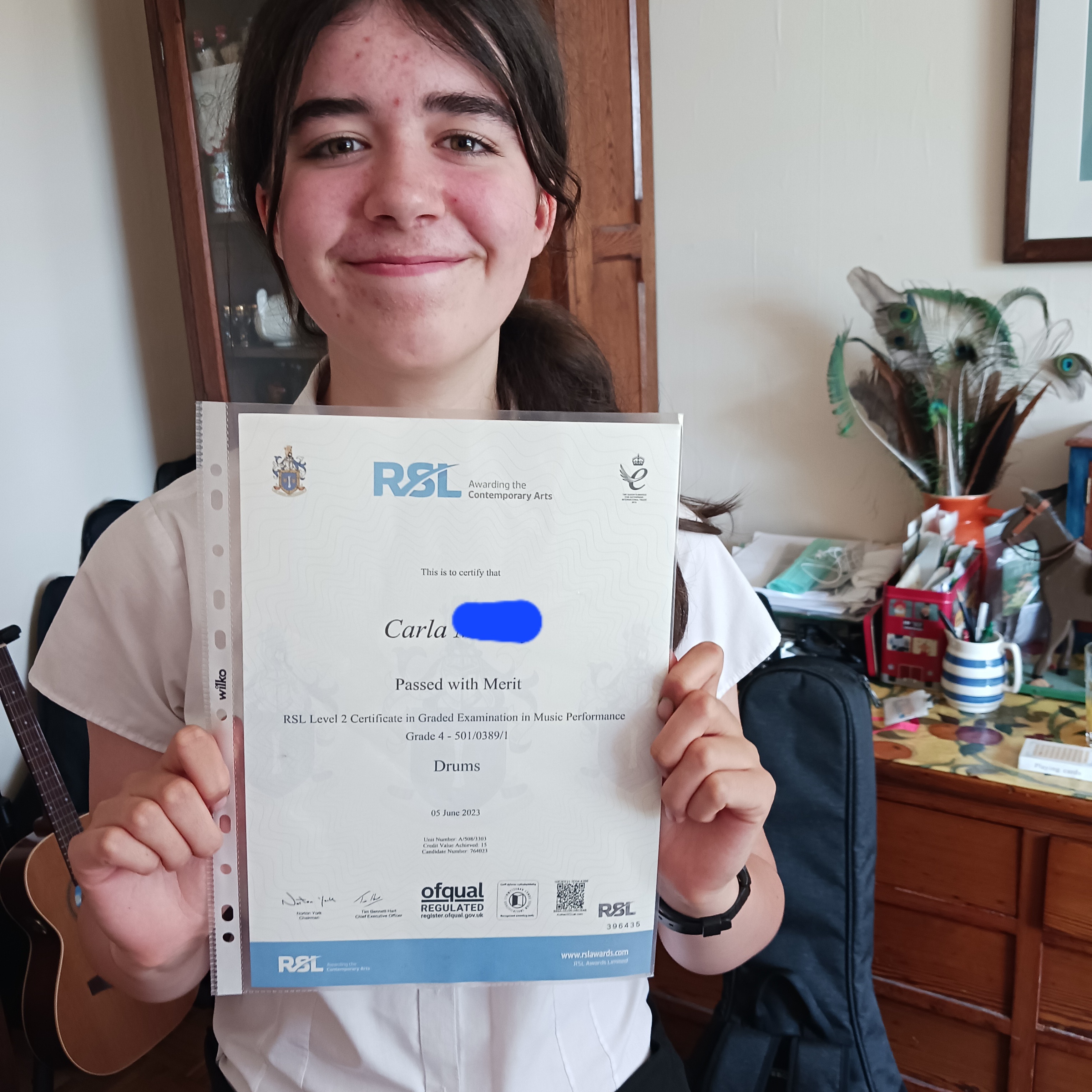 Gallery Congratulations to Carla and her well deserved Merit at Grade 3 Terry from ZiggyPop recording Rehearsals singing lessons Guitar lessons Drum lessons Drum lessons dav sdr mde dav sdr mde mde dav Congratulations to all our pupils who did their grades this term. Share this: Click to share on X (Opens in new window) X Click to share on Facebook (Opens in new window) Facebook Like Loading...
